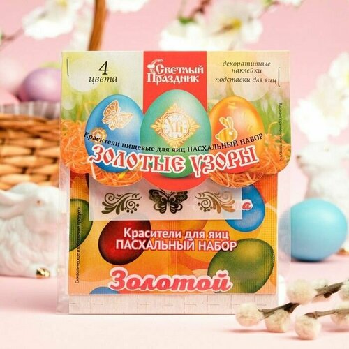 Красители пищевые для яиц "Пасхальный набор: Золотые узоры", 4 шт.