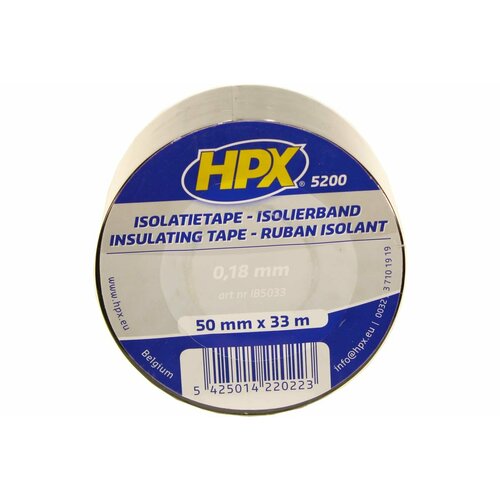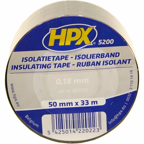 HPX IB5033 Огнестойкая профессиональная изолента из ПВХ INSULATION TAPE 5200 50мм х 33м, чёрная 5425014220223