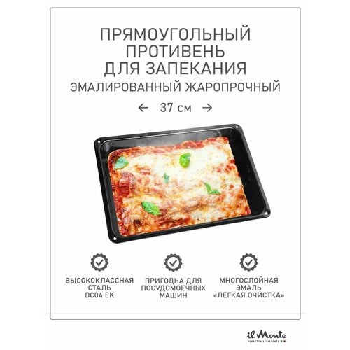 Противень для духовки, Эмалированный, Жаропрочный, Разрешено использовать на углях, индукционной плите, мыть в посудомойке, il Monte TRE-37x27-N