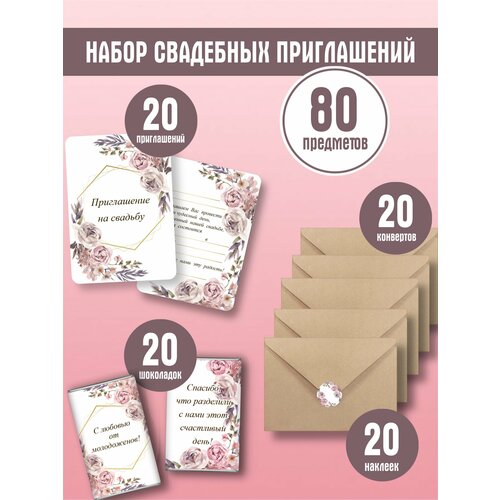 Набор свадебных пригласительных 80 предметов розовый