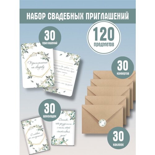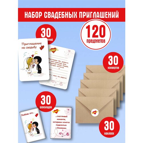 Набор пригласительных на свадьбу 120 предметов