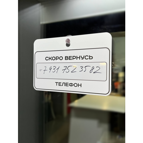 Табличка на дверь Скоро вернусь Перерыв 10 минут / Табличка с номером телефона 225х145мм