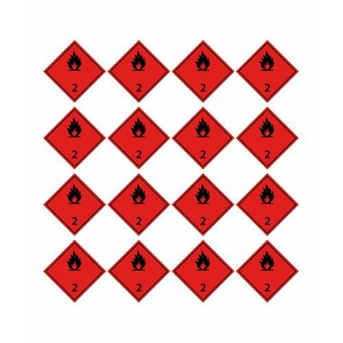 Знак опасности 2.1 Класс (Легковоспламеняющиеся газы) наклейки 16шт. 25х25см.