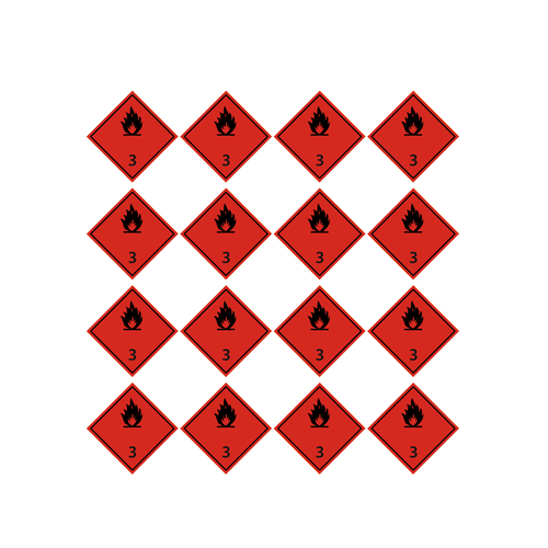 Знак опасности 3 Класс (Легковоспламеняющиеся жидкости) наклейки 16 шт. 25х25см.