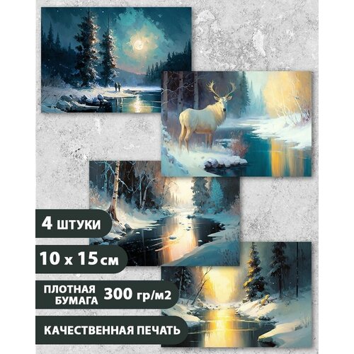 Набор открыток "Зимний сказочный пейзаж", 10.5 см х 15 см, 4 шт, InspirationTime, на подарок и в коллекцию