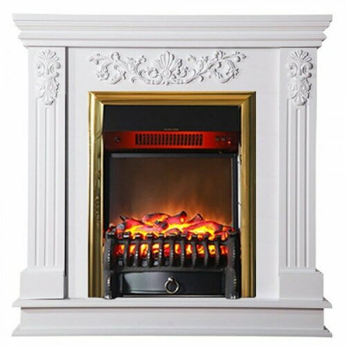 Электрокамин InterFlame Остин с очагом Fobos FX M Brass Белый с золотой патиной