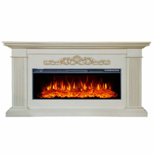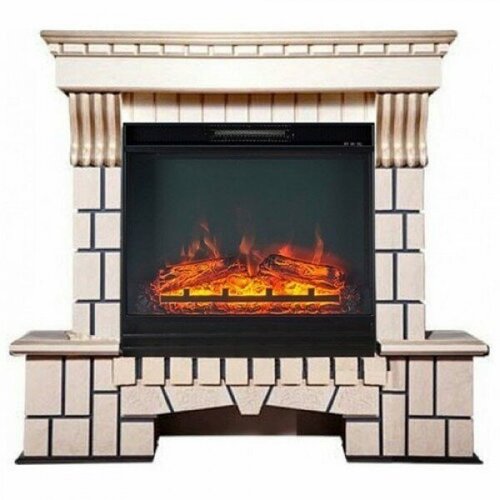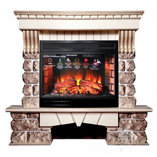 Электрический камин Inter Flame Экстер (Бежевый с з. патиной) с очагом Panoramic 25 600013543900