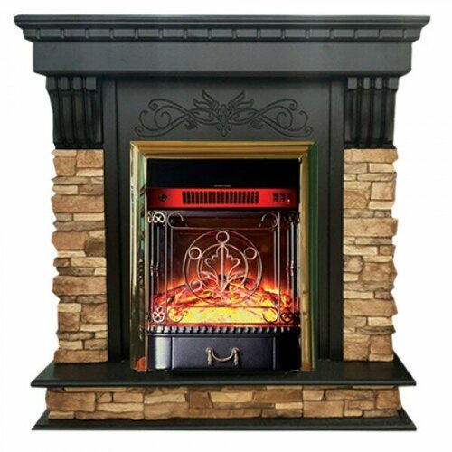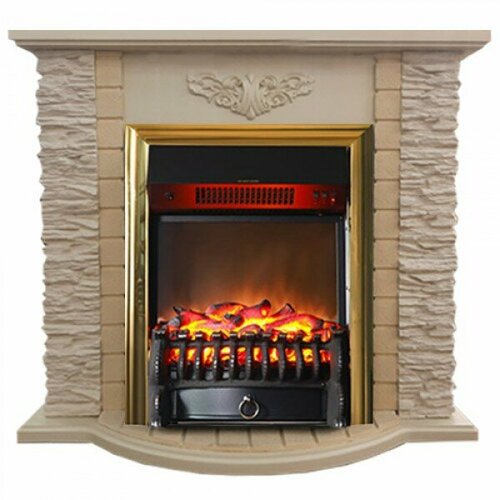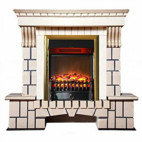 Электрокамин InterFlame Экстер с очагом Majestic FX M Black Бежевый с золотой патиной