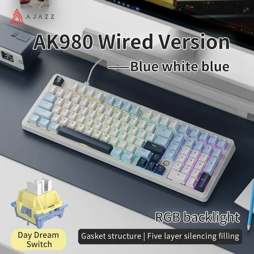 AJAZZ AK980 Проводная Механическая Клавиатура, Ak980 Blue