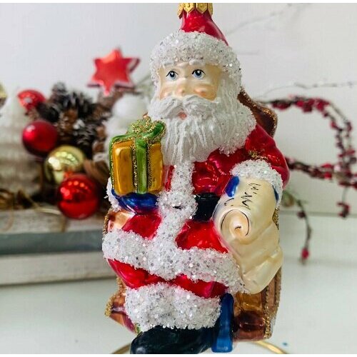 Елочная игрушка IrenaCo Санта в кресле-качалке 13см стекло
