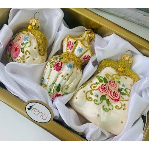 Набор елочных игрушек IrenaCo Дамский Кошелёк, сумочка, флакон. Версаль 11см стекло