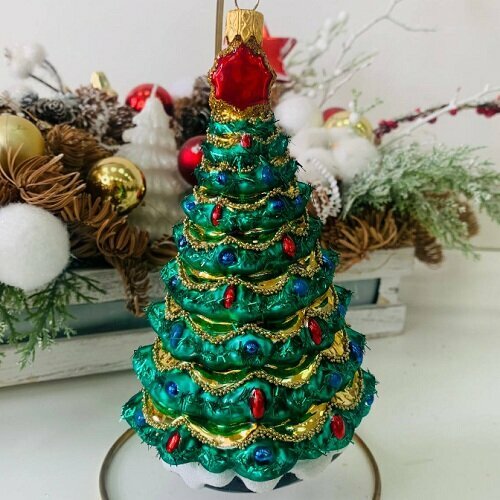 Елочная игрушка IrenaCo Рождественская ёлка со звездой 15см стекло