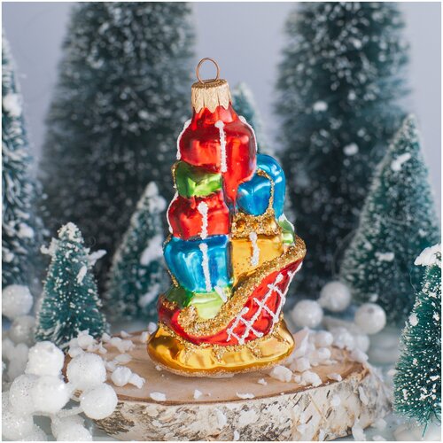 Елочная игрушка IrenaCo Гном с подарком 11см стекло