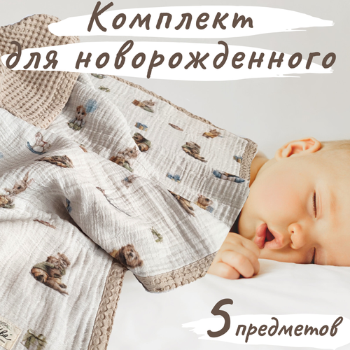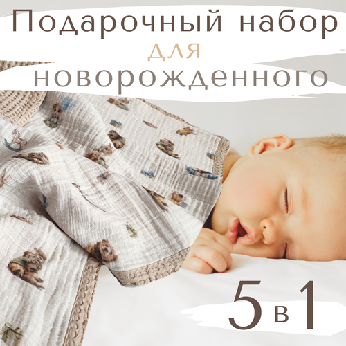 Подарочный набор для новорожденного ИВА "Малыши" из 5 предметов 0-12 месяцев