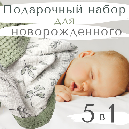 Подарочный набор для новорожденного ИВА "Листья" из 5 предметов 0-12 месяцев