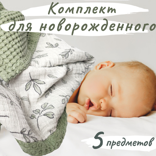 Набор для новорожденного ИВА "Листья" из 5 предметов 0-12 месяцев