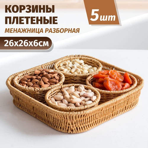 Корзина плетеная менажница, набор из 5шт