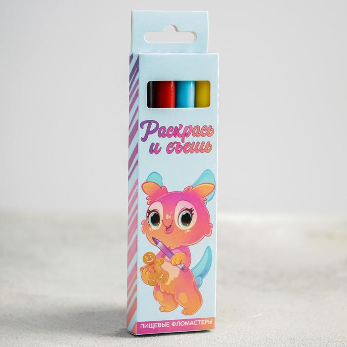 Фломастеры пищевые для украшения десертов, набор: красный, голубой, желтый, чёрный, 4 шт