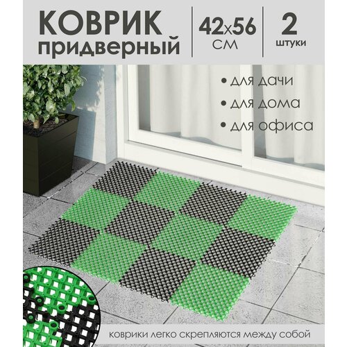 Коврик придверный "Травка", черно-зелёный, 42х56 см - 2 шт.