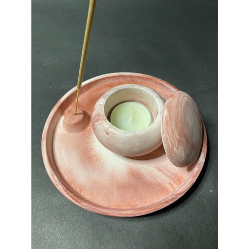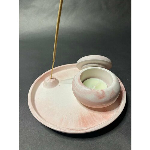 Набор поднос для благовоний и подсвечник. Белый -розовый