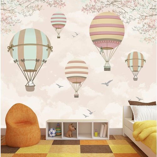 Фотообои флизелиновые 300х250см. на стену. Серия KIDS ARTDELUXE. Воздушные шары на розовом фоне. Обои дизайнерские, эксклюзивные для детской комнаты.