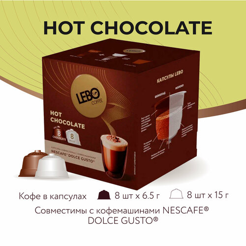 Набор для приготовления напитка в капсулах LEBO Hot chocolate: Напиток растворимый Горячий шоколад + Напиток растворимый молочный сухой, 16кап