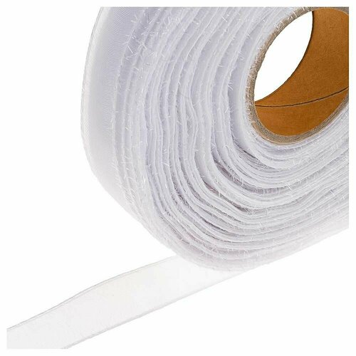 Лента капроновая с блестящим ворсом по краю , белая, шир 1,5см , дл 45м