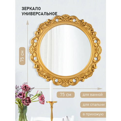 Зеркало Борт 62 х 62 см, в раме, цвет старое золото, Лесма Стиль, в ванную, прихожую, гостиную