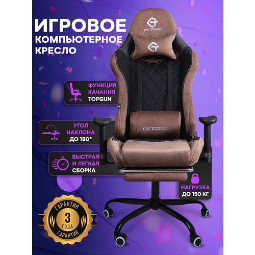 Компьютерное игровое кресло с функцией качания, цвет черно-коричневый