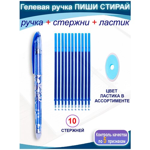 Гелевая ручка "Пиши Стирай", 10 синих стержней, ластик, стирающаяся шариковая