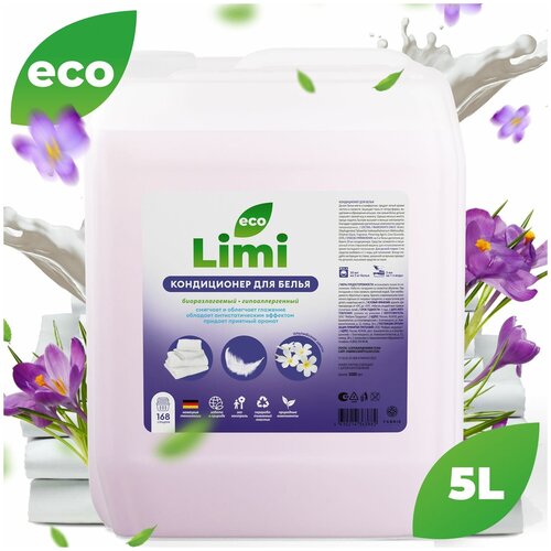 Кондиционер для стирки белья "альпийские цветы" Limi 5 л, гипоаллергенный бальзам ополаскиватель для детского и взрослого цветного, черного и белого