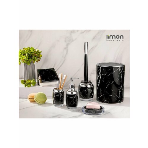 Набор аксессуаров для ванной комнаты 2 предмета (черный, мрамор, круг с педалью) Limon