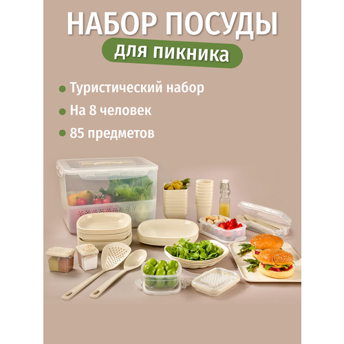 Набор-пикник пластиковой туристической посуды для дома и дачи на 8 персон