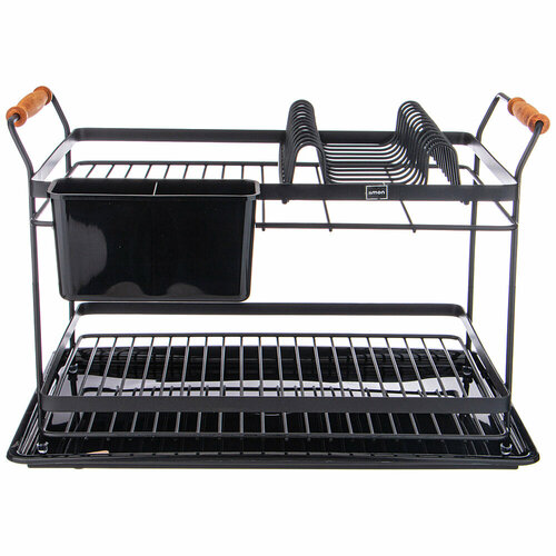 Сушилка для посуды 2-х ярусная прямоугольная, цвет: черный (181931)
