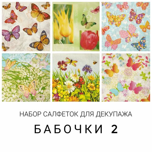 Салфетки бумажные для декупажа трехслойные, 6 шт, 33 х 33 см "Бабочки-2"