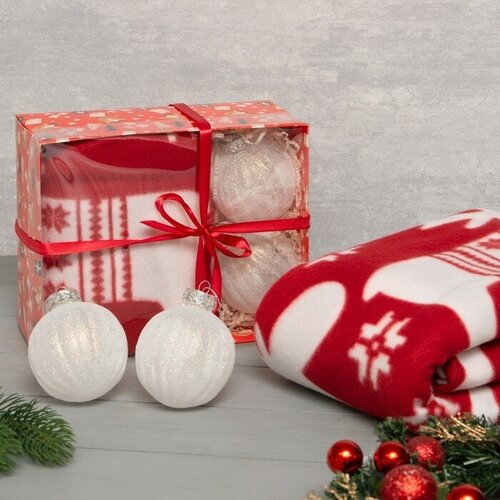 Подарочный набор LoveLife: плед 150*130см "Скандинавия" с новогодними игрушками 9144293