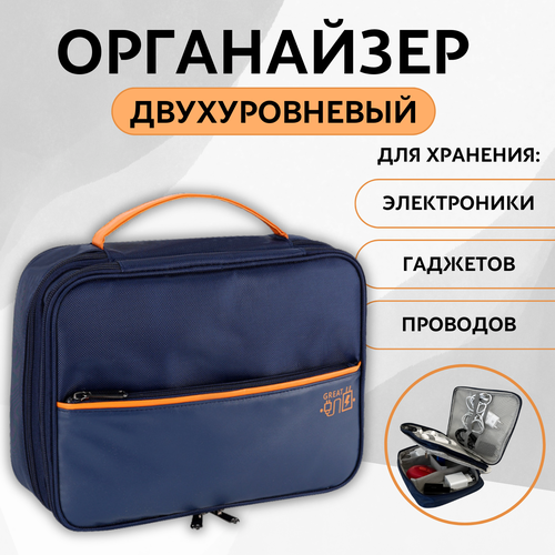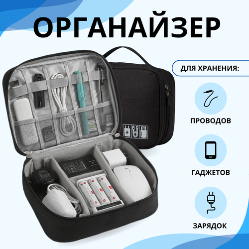 Органайзер двухуровневый для проводов, хранения электроники, гаджетов / Сумка для проводов, электроники, зарядок, гаджетов LugHome