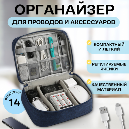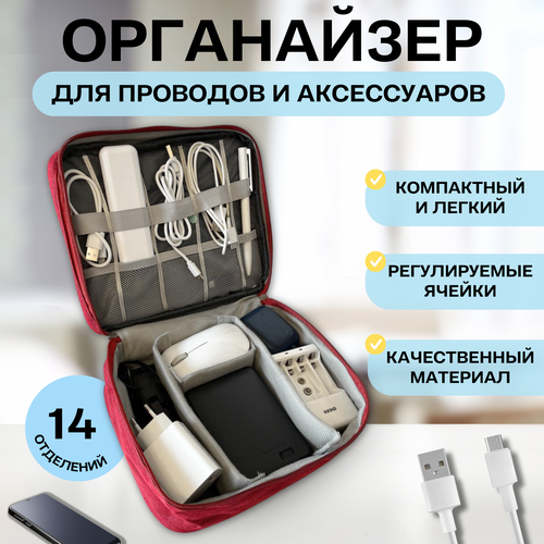 Органайзер для хранения проводов, зарядок, гаджетов / Сумка для кабелей, аксессуаров и электроники, LugHome