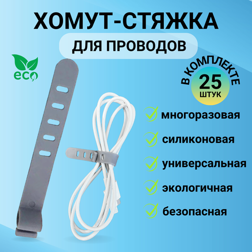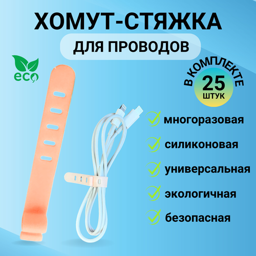 Хомут-стяжка силиконовая для проводов, многоразовый, 25 штук, LugHome