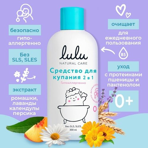 Средство для купания 2в1 детское LULU с пантенолом, без парабенов, без силиконов, 300 мл