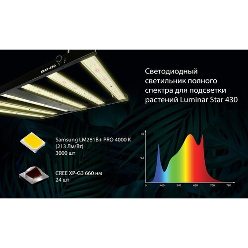 Светодиодный фитосветильник для растений и рассады полный спектр Luminar Star 430