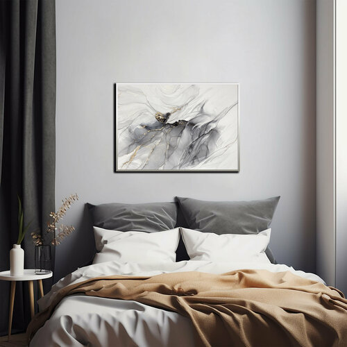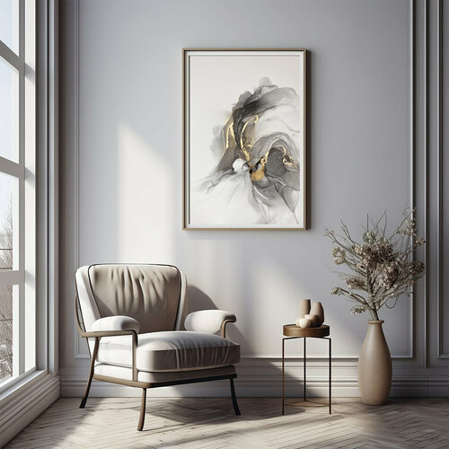 Картина-оригинал — серая картина-абстракция мрамор с золотом 50х70 см флюид-арт спиртовыми чернилами – Мраморный флюид I