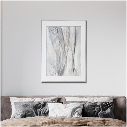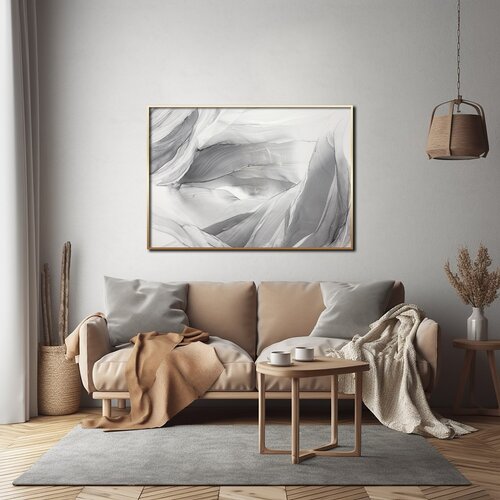 Большая картина-оригинал 1 м — серая абстракция с золотом 70х100 см акварельный флюид-арт спиртовыми чернилами – Кружевная