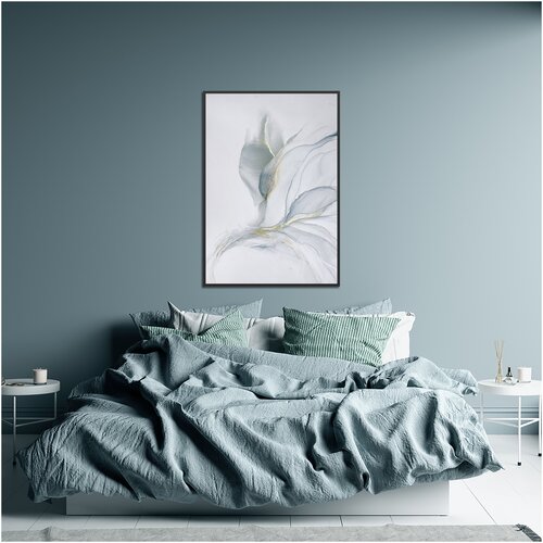 Большая картина-оригинал 1 м — серо-голубая картина с золотом 70х100 см флюид-арт спиртовыми чернилами – Озёрный лист