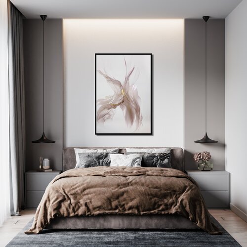 Большая картина-оригинал 1 м — бежево-розовая картина с золотом 70х100 см флюид-арт спиртовыми чернилами – Фрейя II