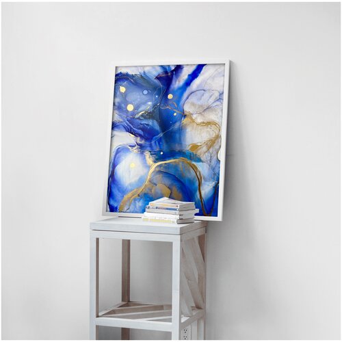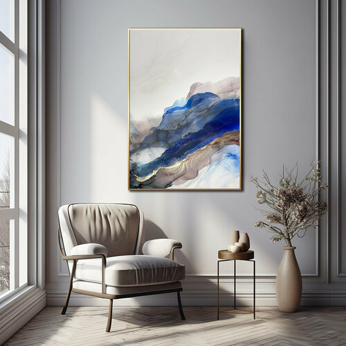 Большая картина-оригинал 1 м — коричнево-синяя абстракция с золотом 70х100 см акварельный флюид-арт спиртовыми чернилами – Яблоко джинири