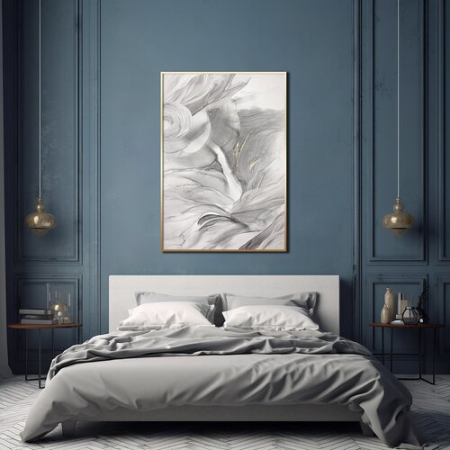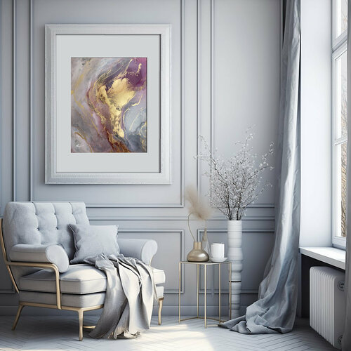 Картина-оригинал — серая картина-абстракция мрамор с золотом 50х70 см флюид-арт спиртовыми чернилами – Мраморный флюид II