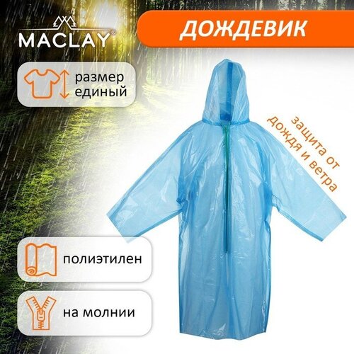 Дождевик на молнии Maclay, шитый (100 г ± 10%), размер единый, способ застёгивания молния