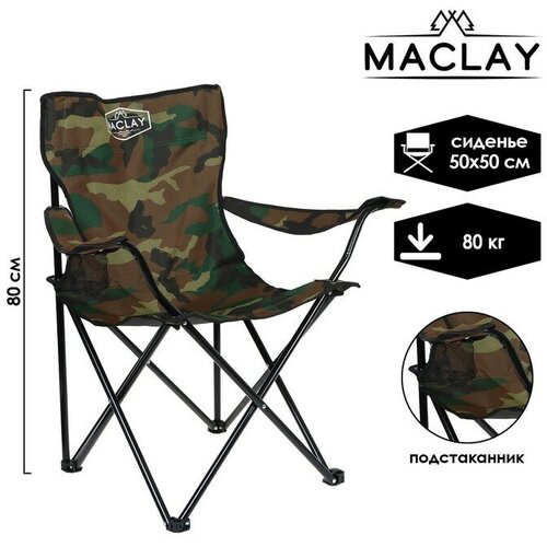 Maclay Кресло туристическое с подстаканником, р. 50 х 50 х 80 см, до 80 кг, цвет хаки