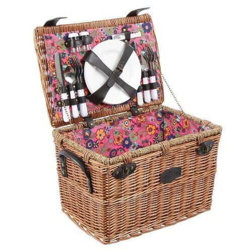 Корзина для пикника с крышкой maclay, плетеная, 4 персоны, лоза 511485
